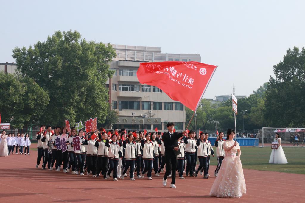开幕式气氛热烈庄重,各学院代表队随进行曲入场。嘟嘟成人网 代表队步伐铿锵、精神昂扬,手持院旗走过主席台,响亮口号展现学院凝聚力。