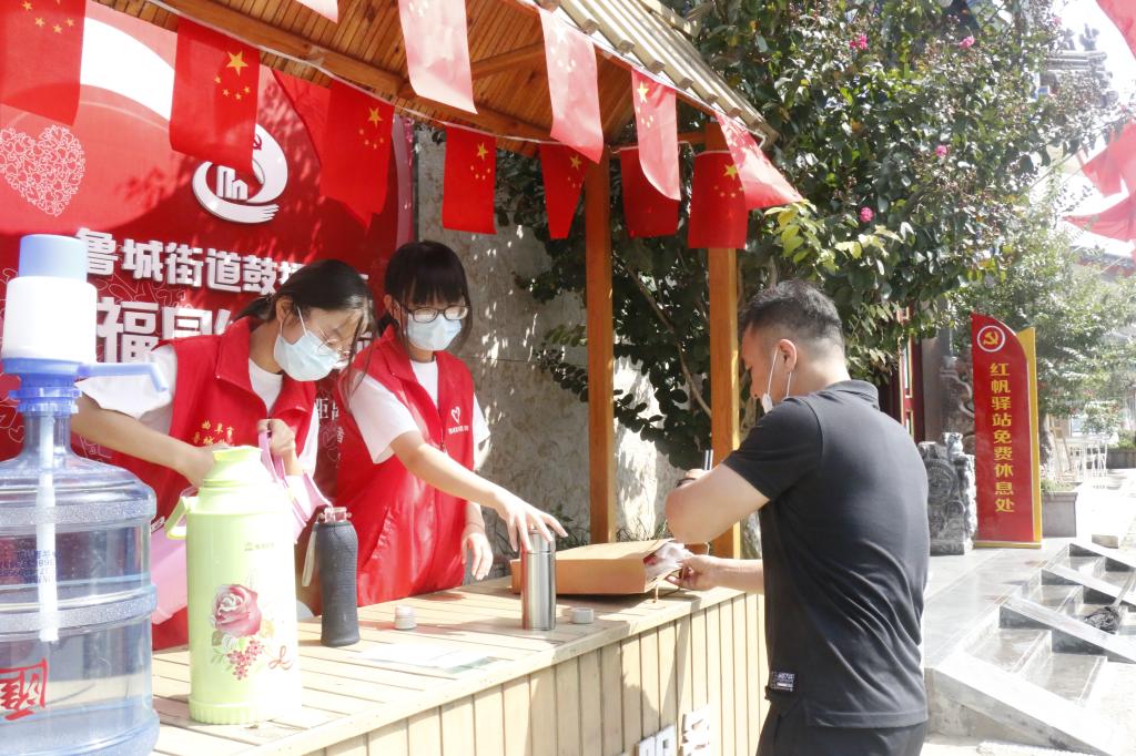 本次志愿服务活动主要分为三部分:在红帆驿站为游客提供热水、口罩;为游客提供路线指引服务;打扫街道,保持干净整洁的街道环境。志愿者们根据自己的工作分配,到达不同的岗位,在相关工作人员的指导下,深入了解自己所在岗位的具体职责,以认真负责的态度和饱满的精神状态在相关区域内开展志愿服务工作。