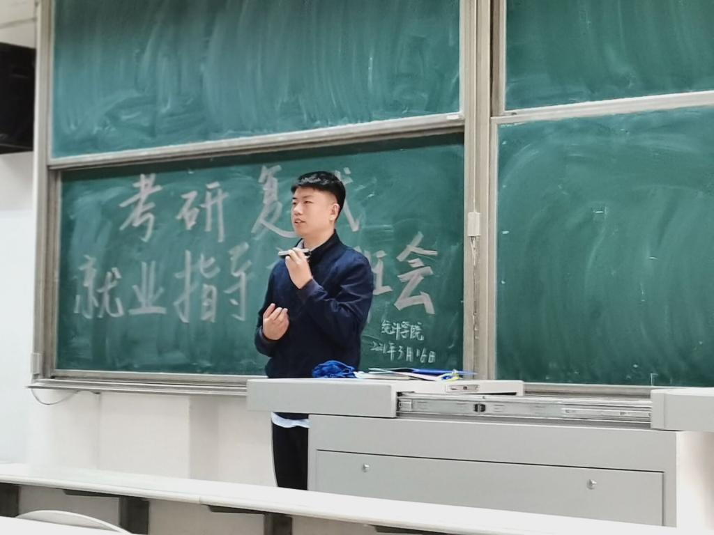 于3月16日上午10点在综合楼106教室开展了考研复试暨就业指导班会。17级辅导员李宴美以及全体17级同学参加会议。