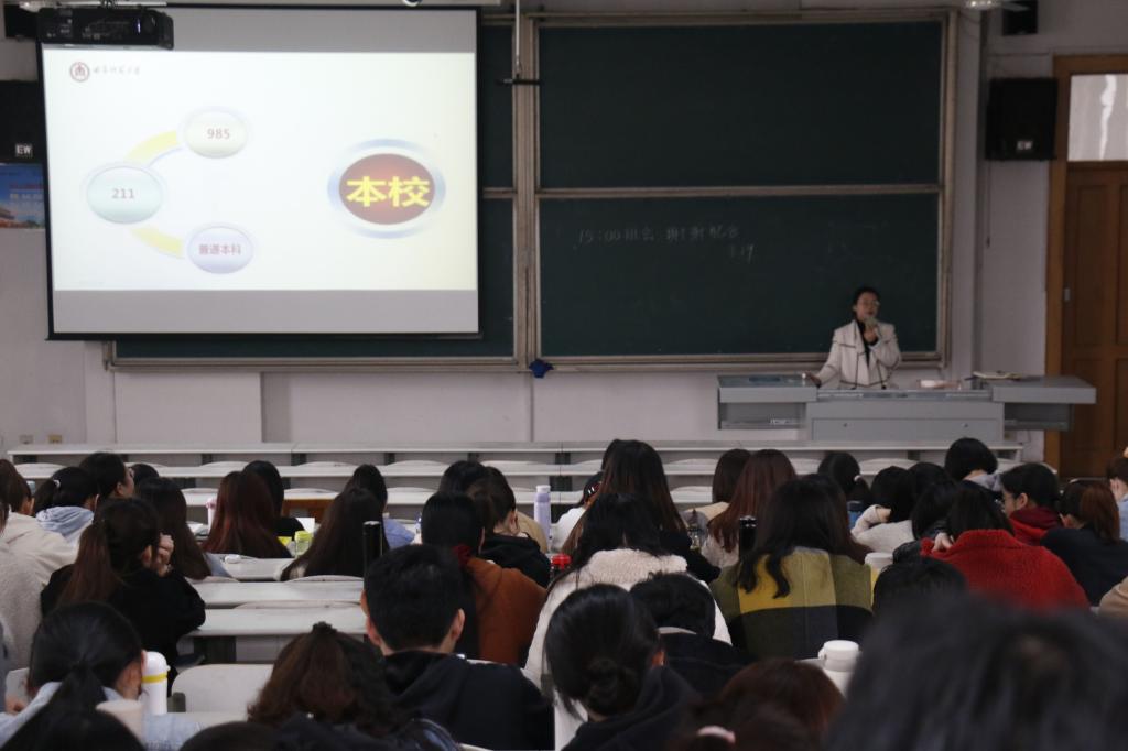 于综合楼306举行18级考研择校班会。本次会议由18级辅导员张风姣老师主持,18级全体同学参加会议。