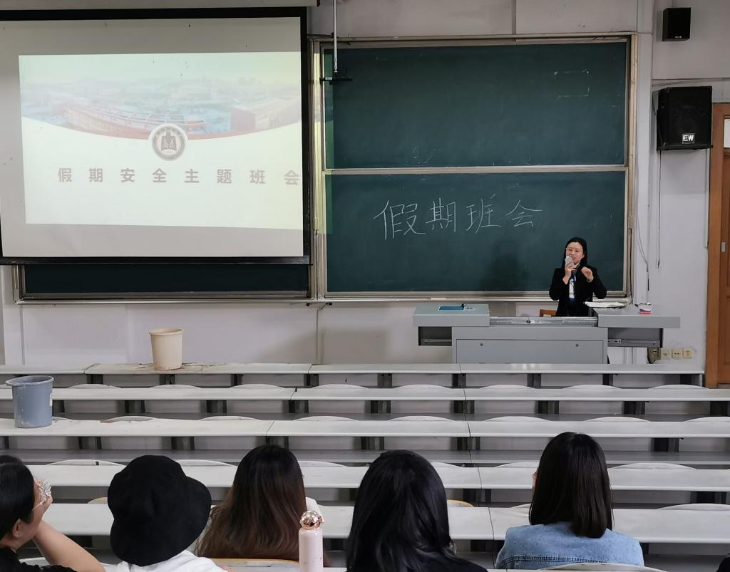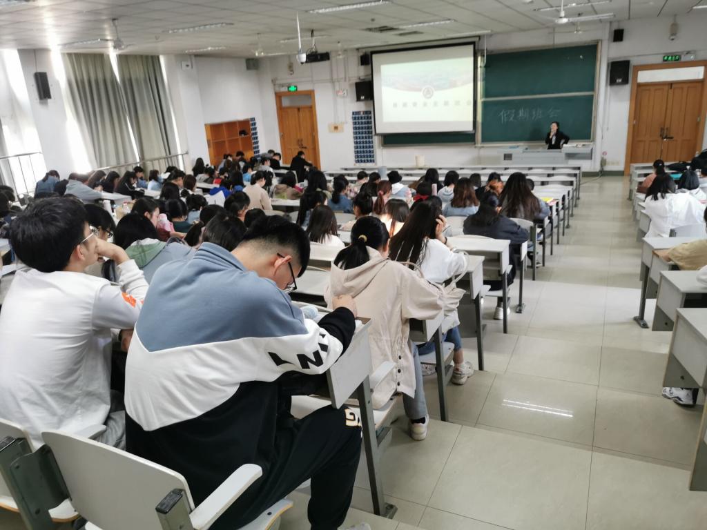会议开始,张风姣老师向大家介绍了当前的考研情况,嘱咐同学们要及时关注自己的学习情况,同时,同学们考研择校要更多考虑实际问题,结合自身的学习情况进行合理选择。接着,张风姣老师就学生在校的宿舍卫生、个人财产安全以及假期出行安全等方面进行了强调老师强调,在平时的学习生活中,同学们要注意宿舍和自习室的用电安全,插排及时拔下,不要通宵为充电宝充电等。最后,张风姣老师指出,假期出行一定要注意安全,乘坐合格的交通工具,出行过马路时注意车辆,不要低头玩手机。