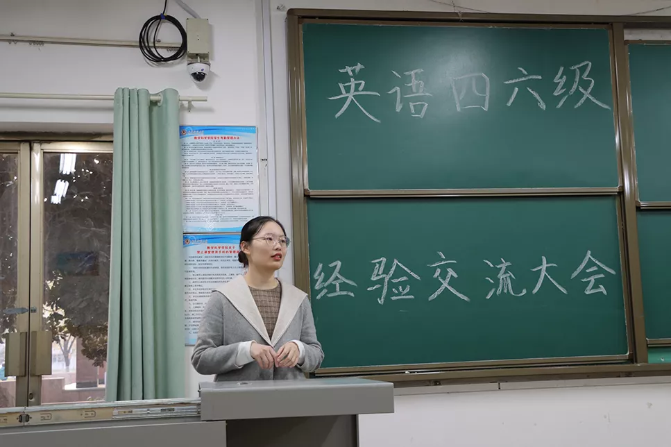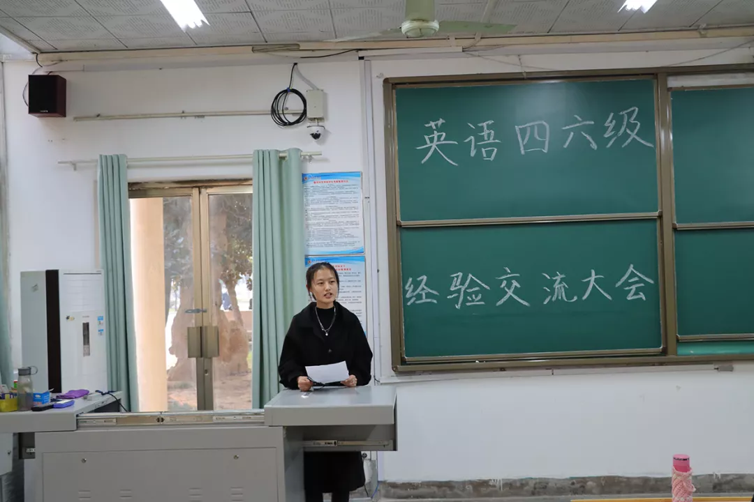 于数科楼101室举办英语四六级备考经验交流学习大会。本次交流会由2018级庞惠心同学进行分享。