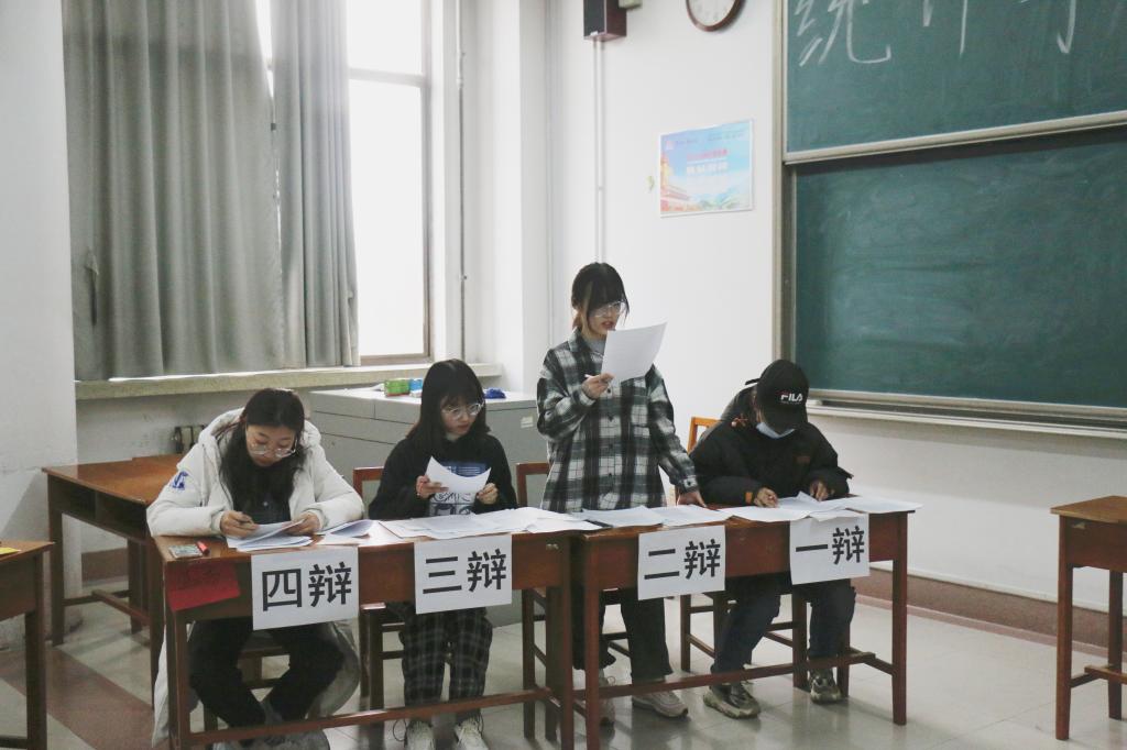 团委学生会副主席徐玮廷,纪检部副部长徐凡淅,学习部副部长苗淑伟担任,并由黄子扬担任此次辩论赛的主席。