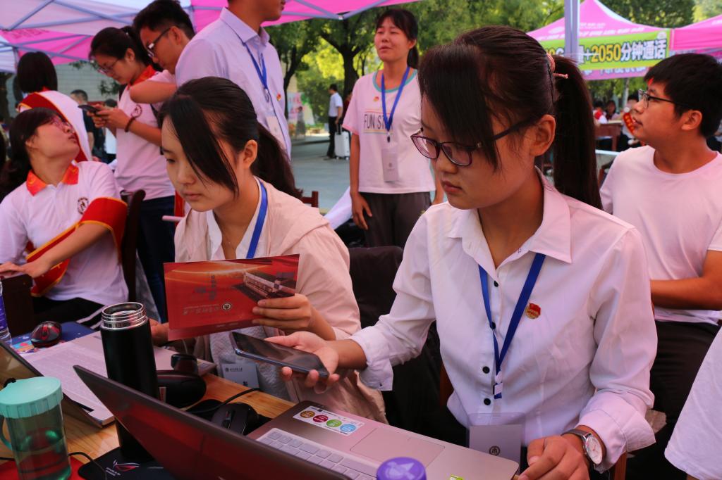 的报到情况,慰问了现场的工作人员,并与新生亲切交谈,向他们致以热烈的欢迎与祝贺。迎新工作组多日前便紧锣密鼓地开展了筹备工作,明确了人员分工,备好了所需材料。随着现场工作的进行,工作人员对报道流程更加熟悉,默契配合,使得整个报名过程紧凑通畅而不失细致周到。工作人员扫描新生录取通知书上的条形码进行签到,在核对新生身份信息无误后,工作人员向新生发放校园卡钥匙等物品,同时,嘟嘟成人网