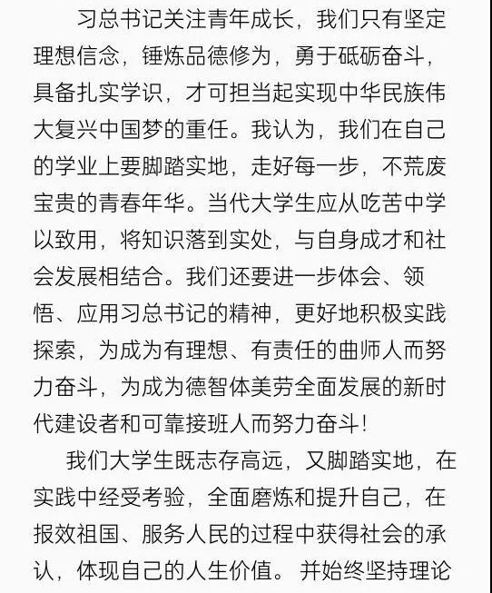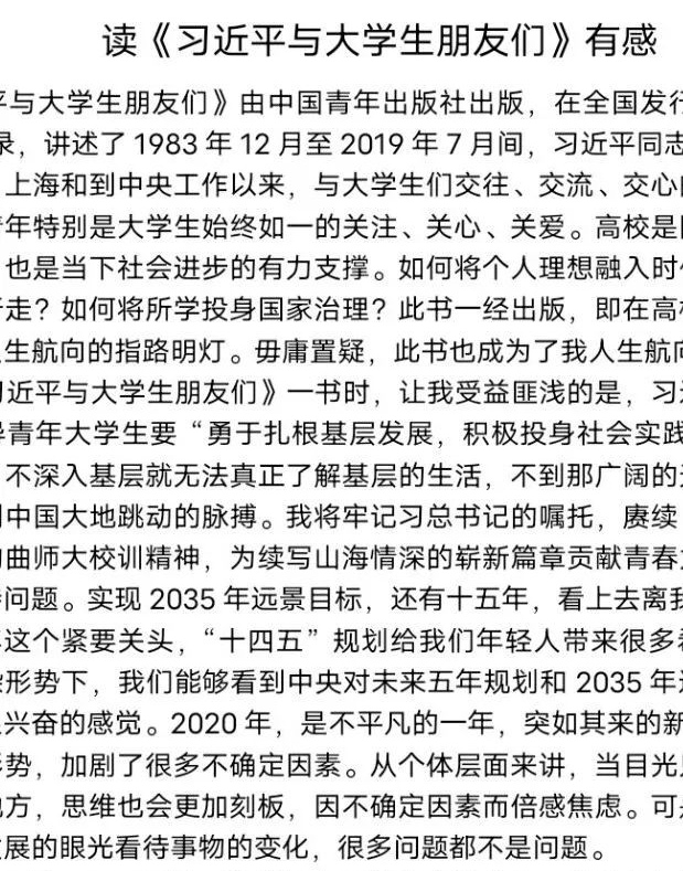 于6月1日至4日以线上方式举办《习近平和大学生朋友们》学习交流心得分享大赛,各年级学生积极参与此次活动。