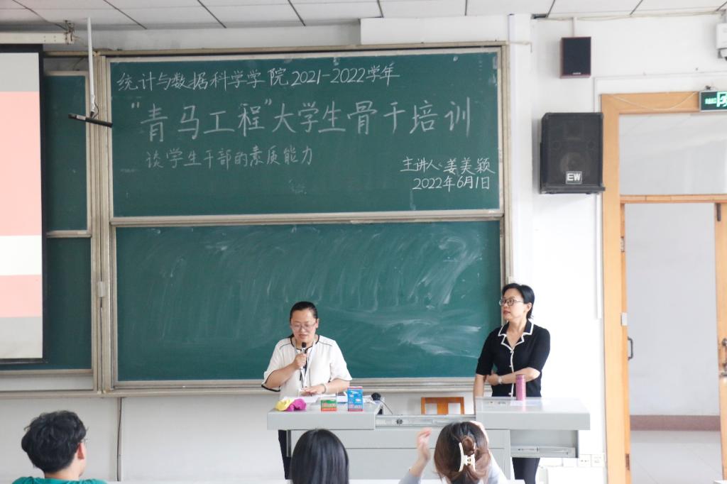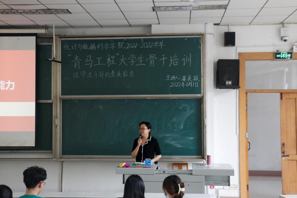 团委于6月1日下午在综合楼206教室举办“青马工程”大学生骨干培训课。此次培训邀请我校学工处处长姜美颖老师主讲,学院团委书记李宴美主持,团委、学生会成员到会参加培训。