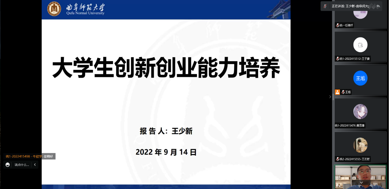 的专业建设与人才培养情况。赵翔华老师从“何为统计学“这一问题引入,利用专业的语言和浅显易懂的例子,全面地向同学们解释了统计学是什么以及选课、学分、重修、毕业等专业方面的问题,使同学们对于接下来要学的专业有了更深一步的了解。而王少新老师则分别从大学教育的目的、创新创业教育、统计学类创新能力训练、大学生创新创业训练计划、创新培养的持续性五个方面详细讲解了有关大学科创的知识,使同学们对科技竞赛有了更深层次的了解,对同学们未来的发展起到重要的作用。
