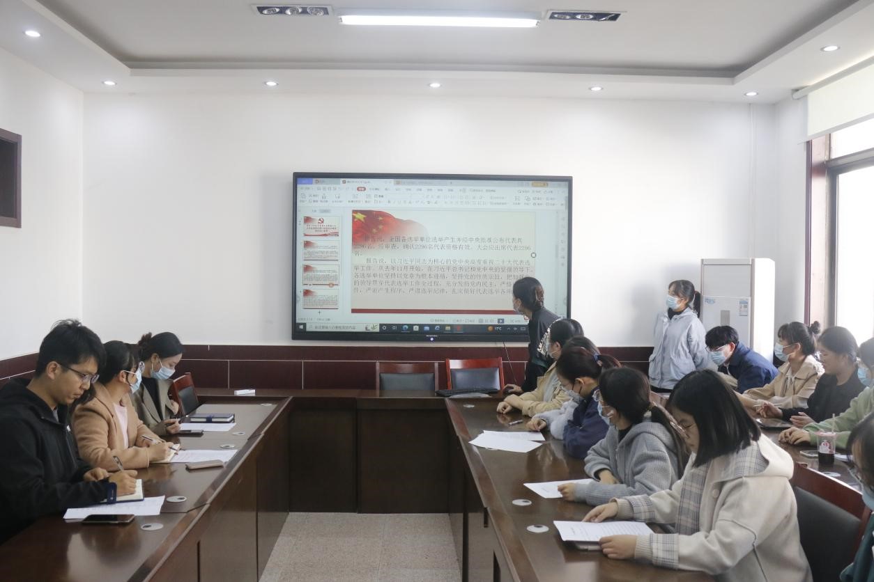 本科生党支部于11月2日下午三点在学院213会议室召开学习党的二十大报告会议。此次会议由学院团委书记李宴美主持,辅导员老师王旭、李祥敏和本科生党支部全体党员及预备党员参加。