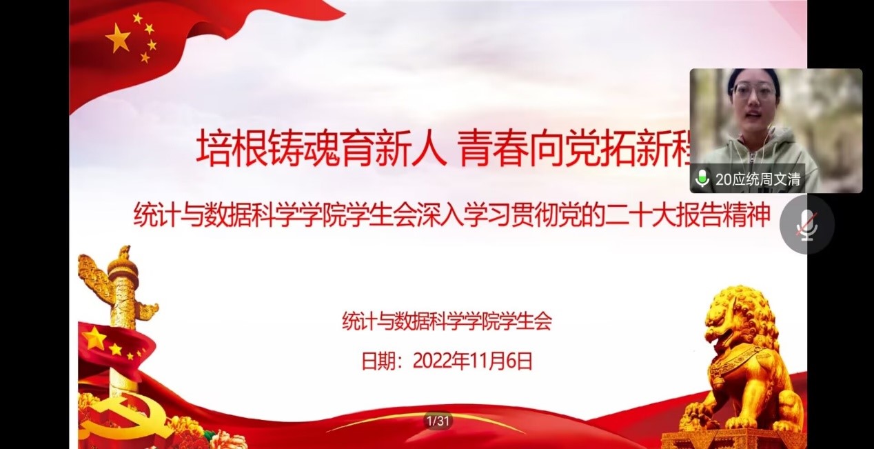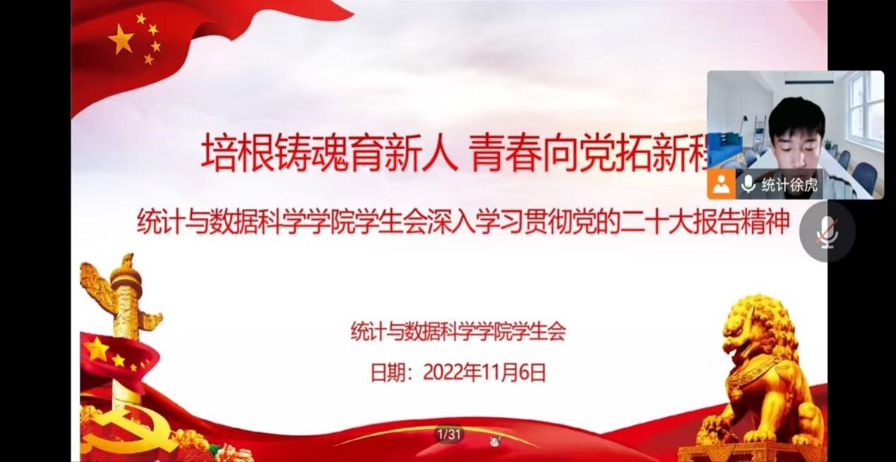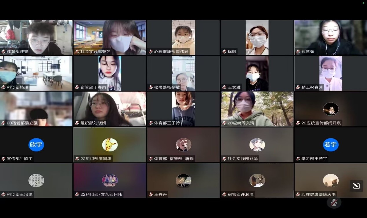 学生会骨干深入学习贯彻党的二十大精神线上学习交流会。会议由学院学生会主席徐虎主持,学院学生会全体人员参加。