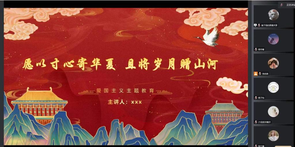 于10月25日开展线上“愿以存心寄华夏,且将岁月赠山河”爱国主义讲座,2021级和2022级全体学生参加。