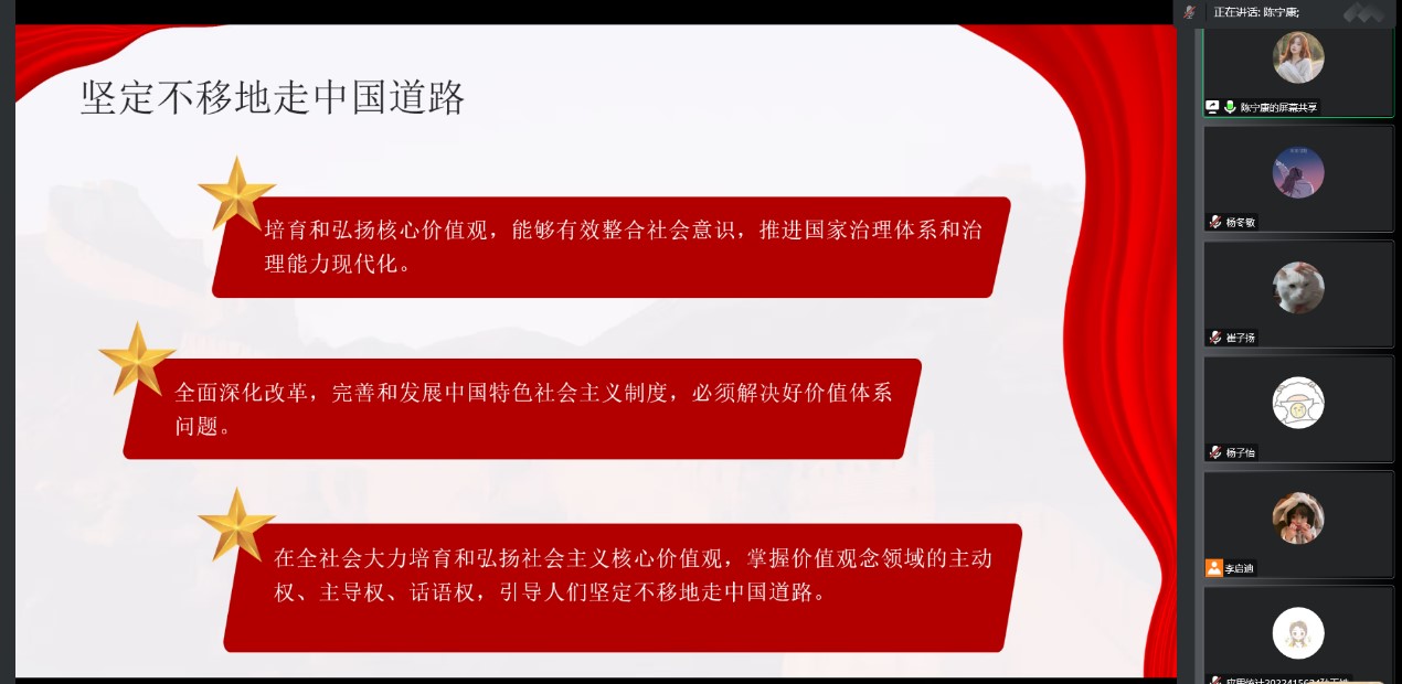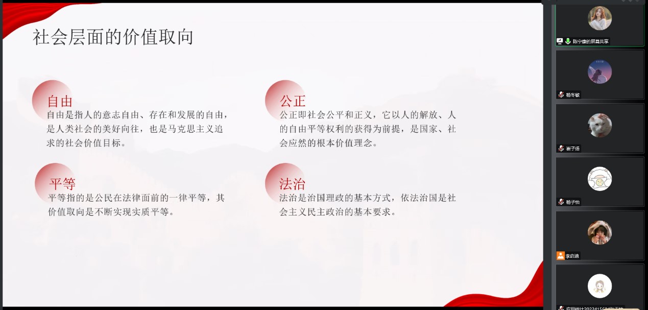 于10月15日开展线上社会主义核心价值观讲座,学院2021级和2022级全体学生参加。
