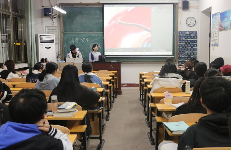 活动伊始,宣讲人简单概括了本次活动的目的及意义,接着列举出日常生活中的“消费陷阱”、投诉渠道等具体的消费知识。在下面的答题环节,大家积极举手回答问题,同时记录人在黑板上记录答题情况。在自由提问环节,同学们询问生活中的消费问题,宣讲人做出正确详实的解答。最后,宣讲人对此次宣讲会进行总结,根据记分情况分发礼品,并宣布此次活动结束。