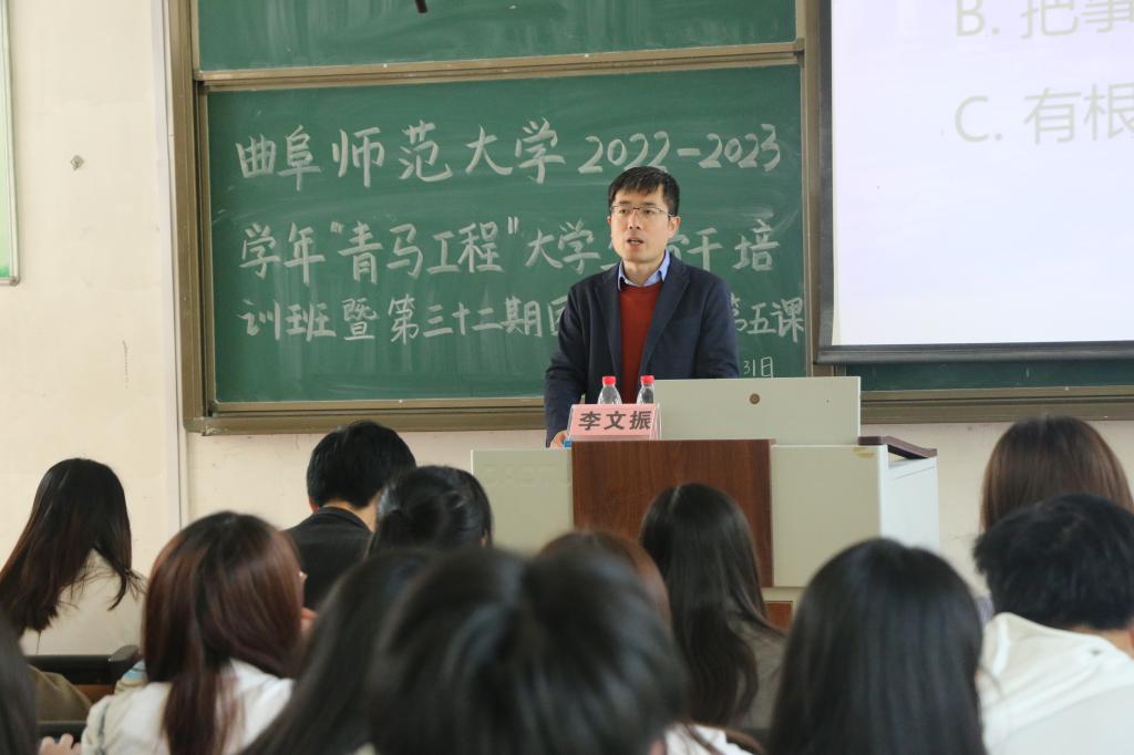 于3月31日下午两点在西联四教室举办“青马工程”大学生骨干培训班第三十二期团校培训第五课。本次青马课,学院邀请学校党委宣传部李文振老师进行授课,2022级辅导员王旭主持本次会议,学院党委副书记季中出席会议,2019级辅导员李祥敏和学生会全体骨干成员参加此次活动。
