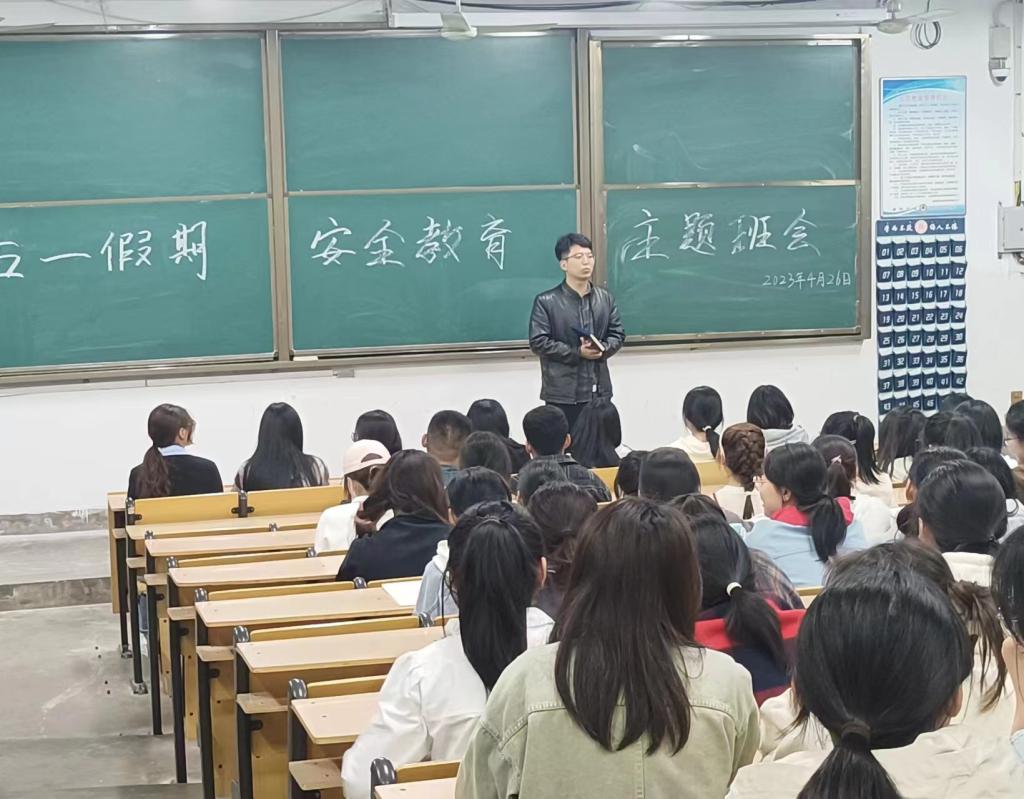 会上,各年级辅导员对五一假期的安全问题做出强调,着重明确放假时间,要求大家需按时返校,并针对请假流程要求进行详细解释,确保同学们的请假规范进行。此外,老师还强调假期期间需保管好个人贵重物品,注重个人财产安全,放假离校前需切断宿舍电源,做好宿舍防火。提醒同学们假期出游一定注意交通安全,注重个人生命、财产安全,防火防盗,建议同学们在假期中积极主动参与家务劳动,并勉励同学们戒骄戒躁、努力学习,度过一个愉快充实的假期。