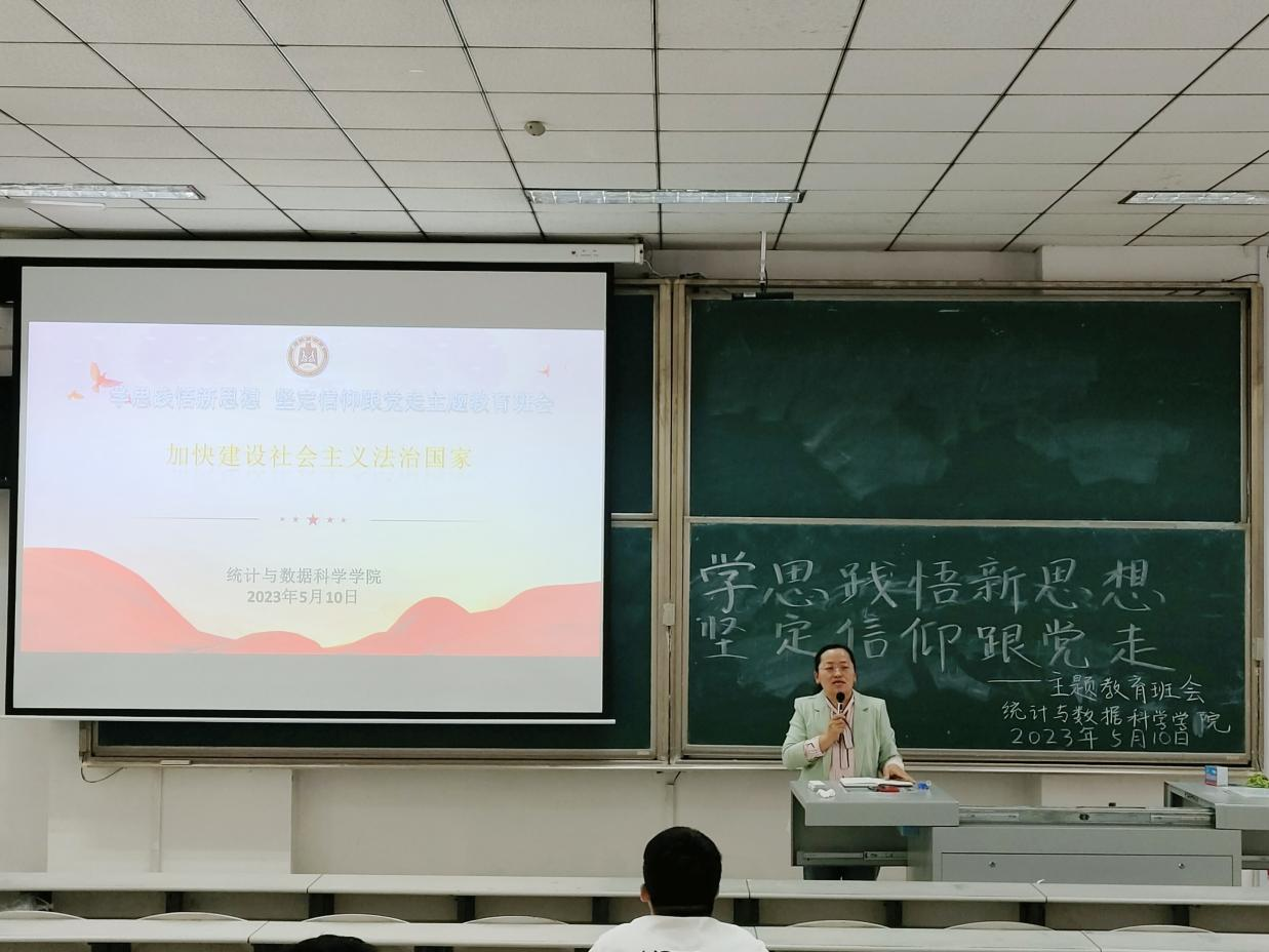 于5月10日下午四点在综合楼106举办“学思践悟新思想,坚定信仰跟党走”主题教育班会,教育引导统计学子积极投身全面建设社会主义法治国家的生动实践。本次班会由2021级辅导员李宴美老师主持,2021级全体学生参加。