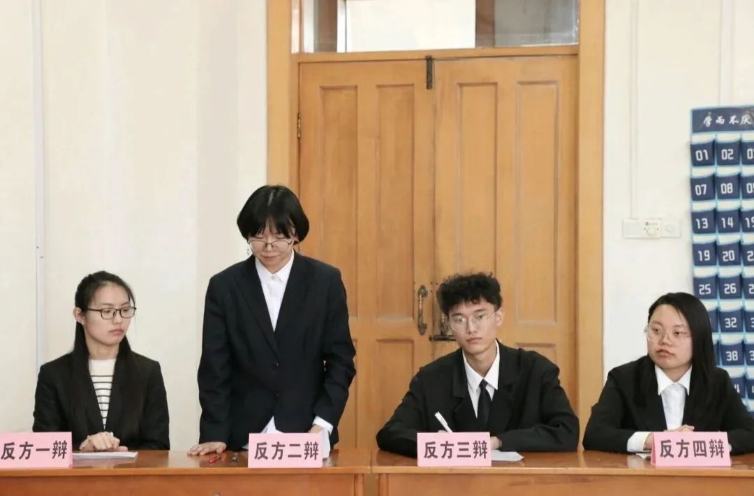 活动分为五个环节,分别是开篇立论、一对一攻辩、攻辩小结、自由辩论和总结论词。待全体成员入场做好准备后,由主持人致开场词,介绍本次活动的评委及双方辩手,并宣读活动规则及注意事项,宣布比赛正常进行。活动中各方辩手措辞有理有据,各执己见,展现了自身思辨能力和良好口才。辩论结束后由评委进行打分,由主持人宣布本场比赛的结果并公布获奖情况。