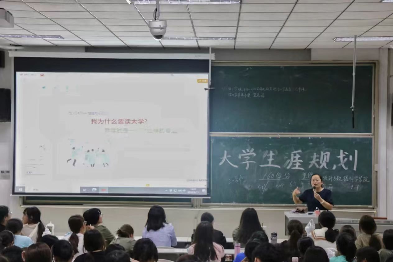 于2023年9月17日晚7:00在综合楼201教室召开大学生涯规划入学教育讲座。本次讲座由院团委书记李宴美老师主讲,2023级全体新生参加。
