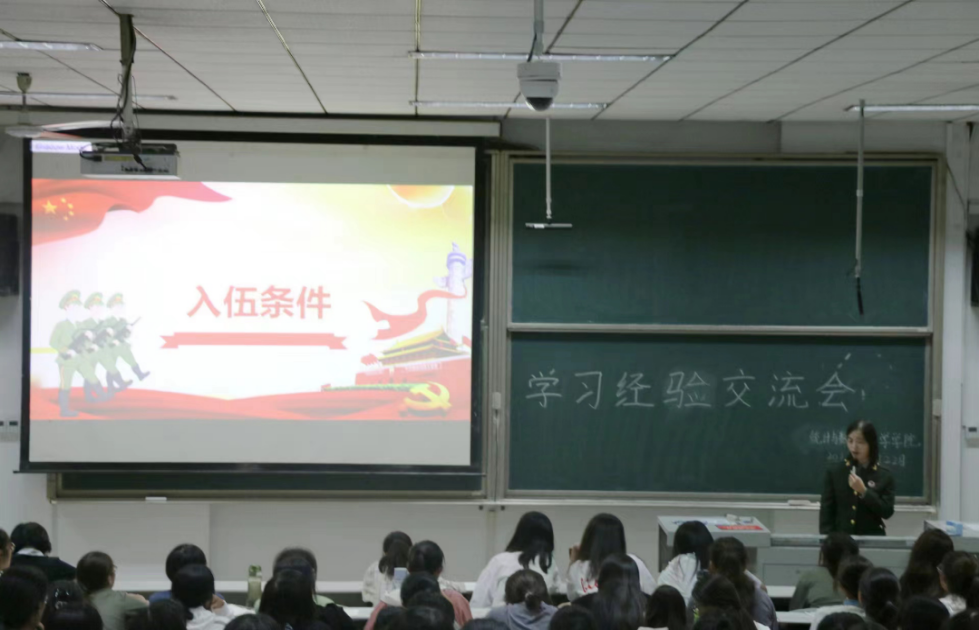 2020级王丹丹师姐于2023年9月22日19:30在综合楼601进行入伍宣传,2023级全体学生参加此次活动。