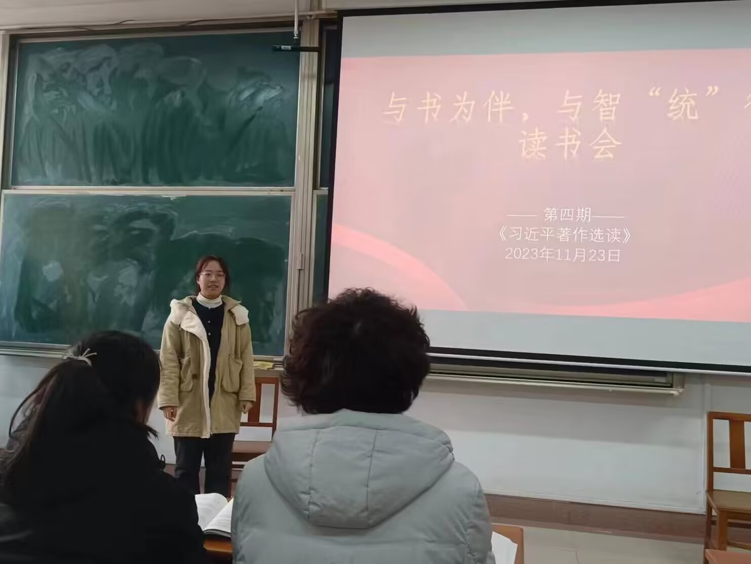 于11月23日16:00在综合楼206举行“与书为伴,与智‘统’行”读书会第四期,本次读书会围绕《习近平著作选读》展开。团委书记李宴美出席本次活动,团委副书记娄力钧主持,学生会各部门部长参加。