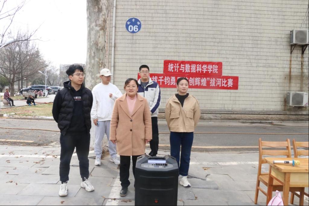 比赛分为初赛、复赛、决赛三个阶段,每个阶段的比赛采取三局两胜的赛制。比赛开始前,参赛者们在活动场地集合热身。比赛开始,各队负责人将队员进行排列,队员依次交错站在河界后拔河绳的两侧。当裁判员发出“预备”口令时,双方队员拉直拔河绳做好准备。鸣哨后,各方选手奋力将绳拉向自己的一方,老师及拉拉队成员为他们加油,经过一番激烈角逐后,拔河比赛圆满落下帷幕。最终2023级统计一班获得了比赛一等奖,2021级应用统计班获得二等奖,2022级统计二班获得三等奖,2023级统计二班获得了道德风尚奖。
