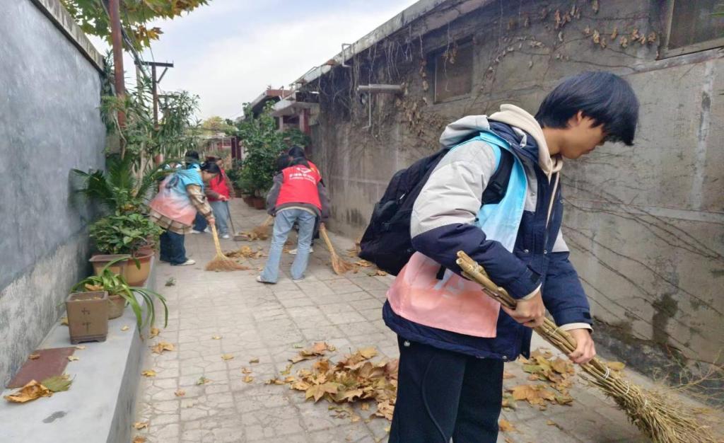 志愿者在鲁城街道阙里社区举行义务劳动活动,他们身着统一马甲,代表着嘟嘟成人网