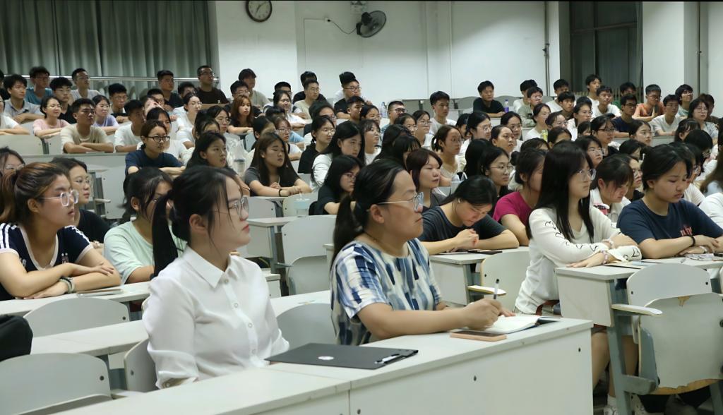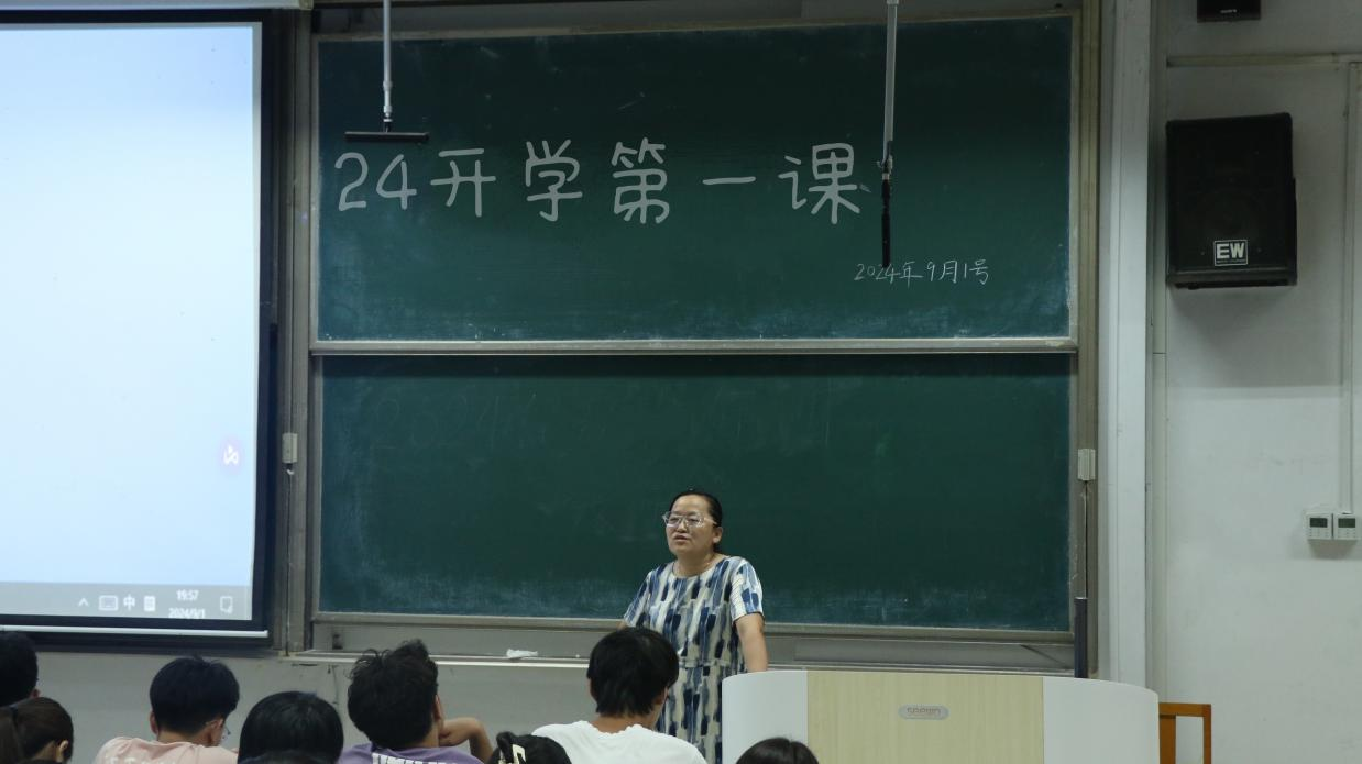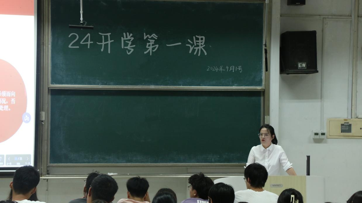 于2024年9月1日在综合楼106召开24级新生开学第一课。本次班会由学院党委副书记季中老师、团委书记李宴美老师和2024级辅导员李文静主讲,24级全体同学参加。