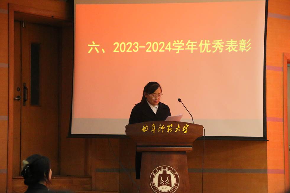 于2024年12月1日在孔子会堂召开学风建设大会。学生工作处副处长毛永正、学院党委书记石倩、院长赵胜利、党委副书记季中、副院长赵翔华、研究生副所长王文武、基础教研室主任陈晓静出席。本次大会由团委书记李宴美主持,全体辅导员、2023级、2024级全体本科生、研究生参加此次大会。