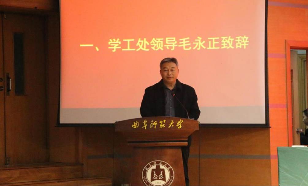 大会伊始,学生工作处副处长毛永正致辞,他首先肯定了学院取得的成就和学风建设成果,强调学风建设不仅是学院发展的基石,更是每位同学成长成才的关键所在,希望全体师生能够共同努力,营造积极向上的学习氛围,并预祝大会圆满成功。