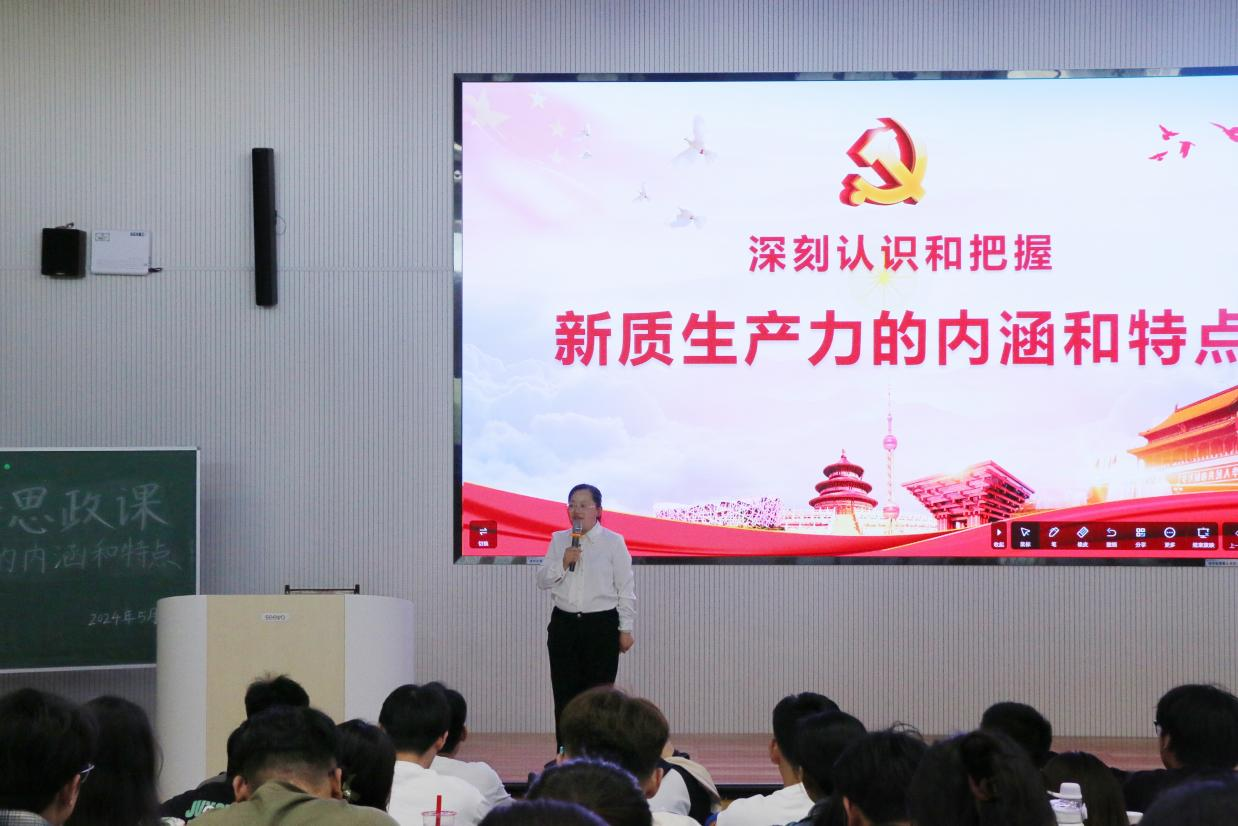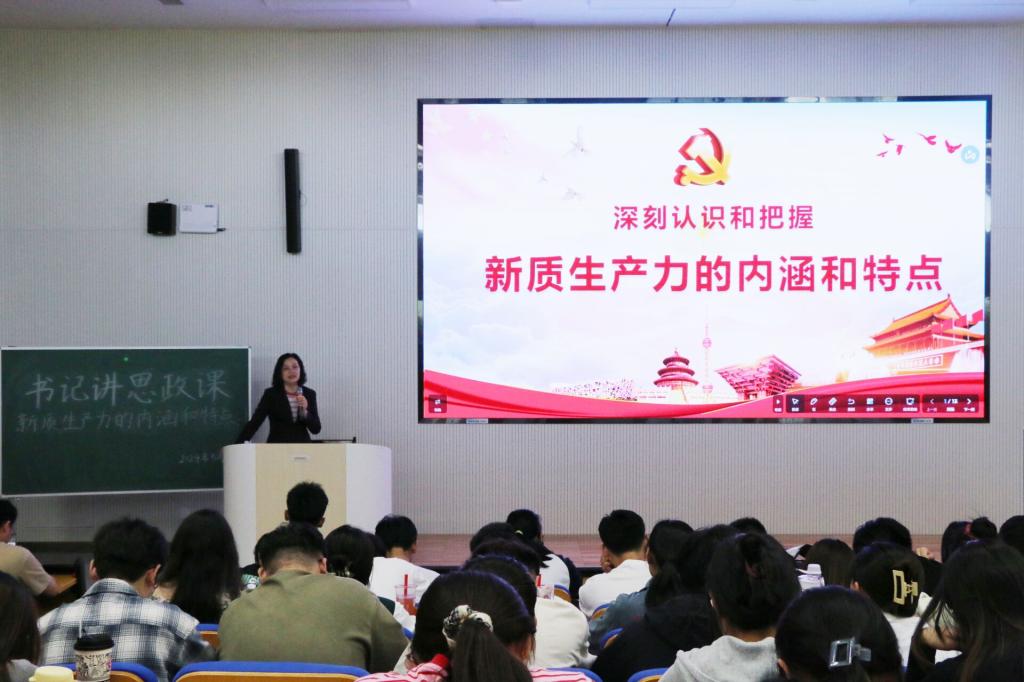 党委书记石倩为学生讲授题为《深刻认识和把握新质生产力的内涵和特点》的专题思政课,学院团委书记李宴美主持活动,嘟嘟成人网