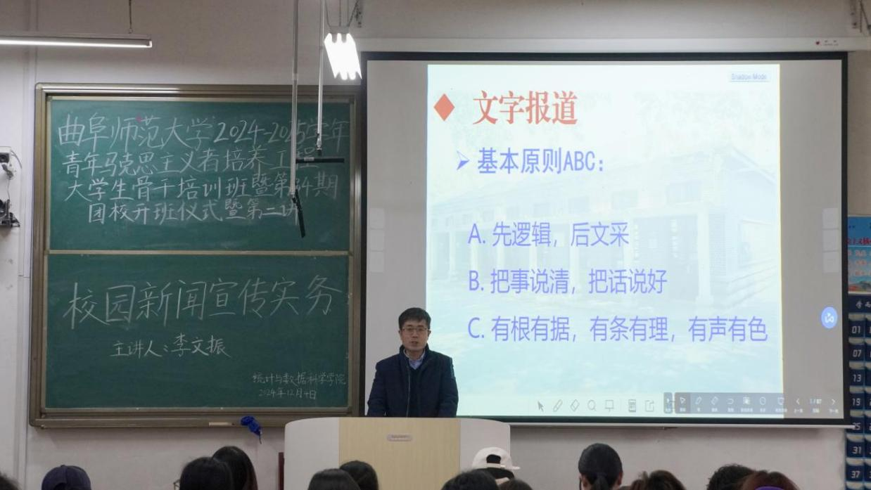 于2024年12月4日下午2:30在西联一教室召开2024-2025学年青年马克思主义者培养工程大学生骨干培训班暨第34期团校开班仪式暨第二讲——校园新闻宣传实务。会议邀请校宣传部李文振主讲,嘟嘟成人网