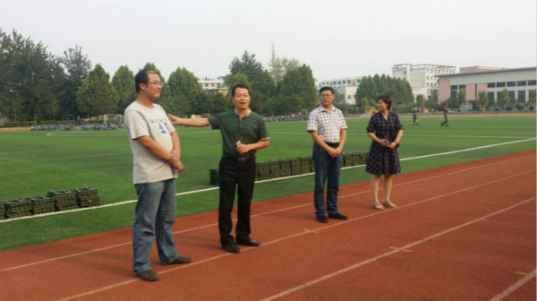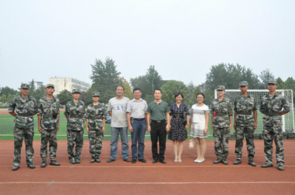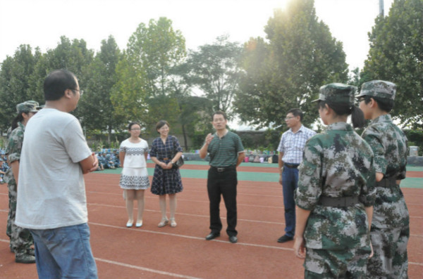 15级辅导员李玲莅临军训现场视察军训情况并慰问教官和新生。