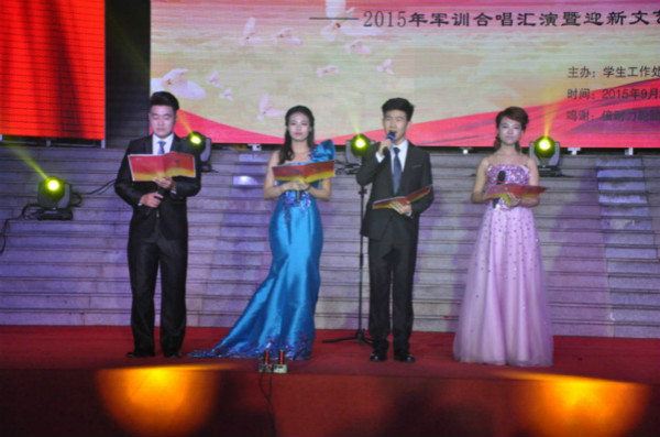 2015年9月24日晚7:00,2015年军训合唱汇演暨迎新文艺晚会在科技实验大楼前隆重举行。这次晚会以“军歌嘹亮,梦想起航”为主题,以此纪念军训的结束并欢庆大学生活的开始。随后,副校长马东骅在开场致辞中勉励新生恪守“学而不厌,诲人不倦”的精神,传承勤劳朴实,优良进取的作风,在大学生活中创造新的精彩。