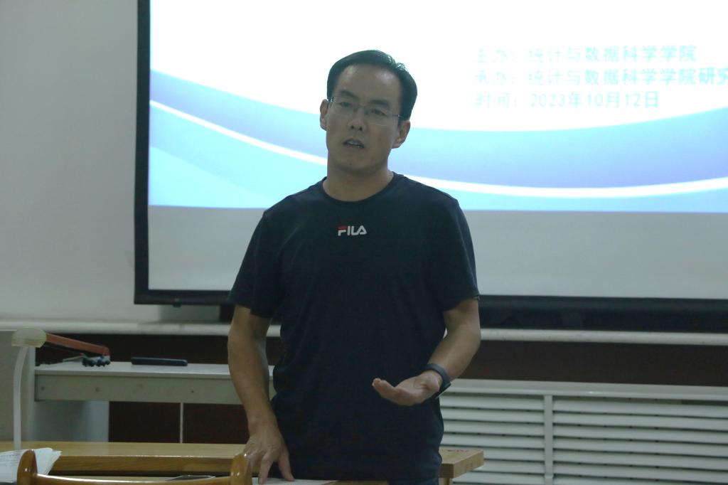 于10月12日晚上七点在学院211教室举办了研究生学科竞赛经验分享会。出席本次分享会的有研究生工作负责人王文武老师、具有丰富竞赛指导经验的王明秋老师、王少新老师、苏玉霞老师以及全国大学生市场调查与分析大赛研究生组国家一等奖获得者崔航和全国大学生统计建模研究生组山东省一等奖获得者王倩,活动由研究生会主席团成员曹盈娜主持,2023级全体研究生参加分享会。