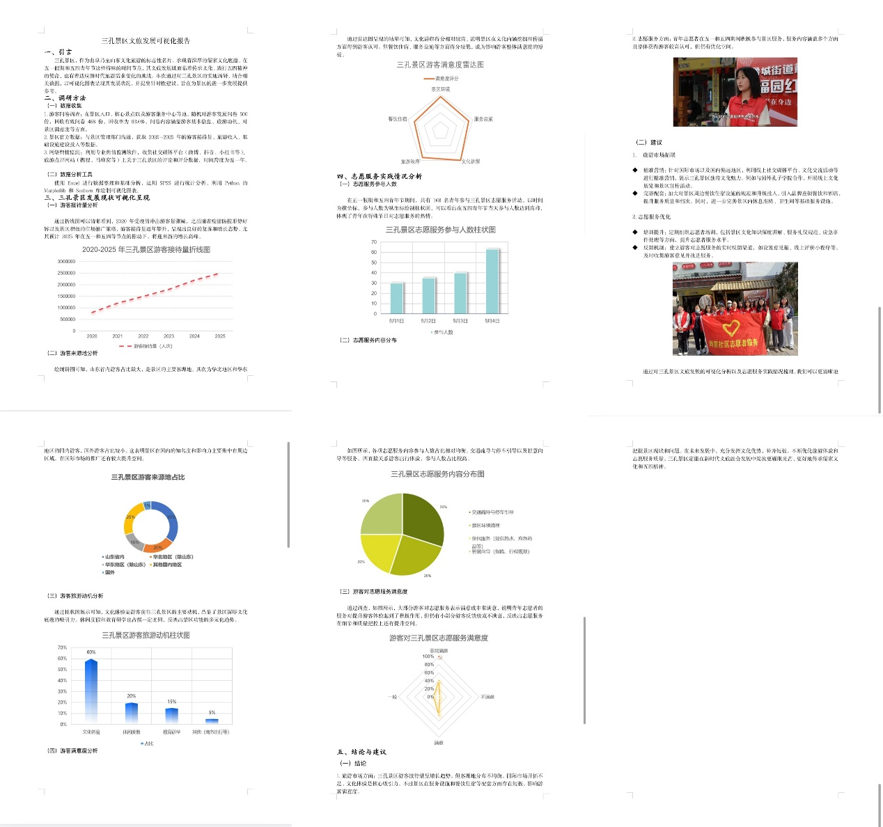 活动开展期间,学生们紧扣“五一返乡+五四传承”双主题,走访红色教育基地、非遗工坊、乡村振兴示范点等。实践中,他们深刻体会五四精神中“以知促行、以行求知”的内涵,提高学科知识的应用能力。参赛作品中,可视化报告通过数据分析与图表,呈现家乡文化的发展脉络与当代价值,提出传承方案。实践报告以严谨的态度,梳理调研过程,图文并茂地展现实践收获与思考。活动最后,评委综合多方面评审与讨论,选出系列优秀作品。