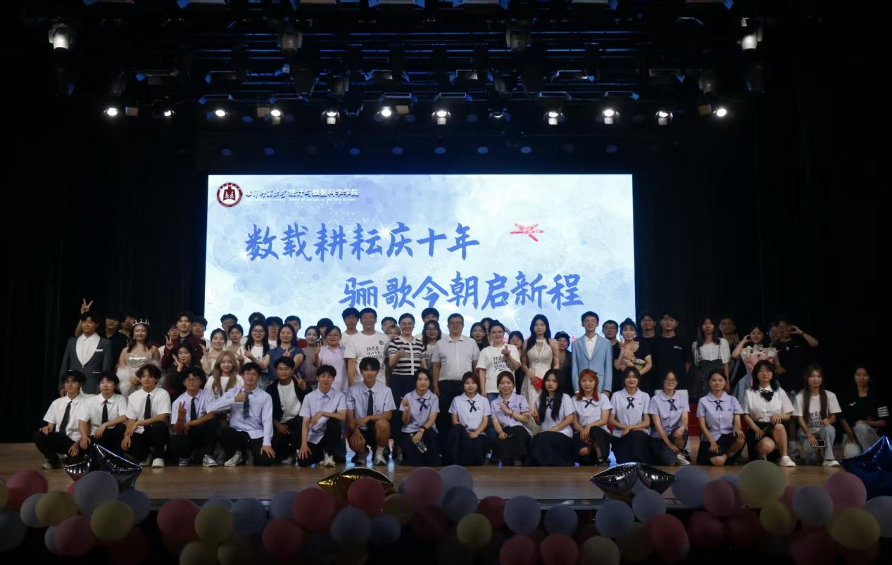 十年发展历程的全面回顾与精彩展示。从教学改革的创新突破,到科研领域的累累硕果,再到人才培养的卓越成效,全方位呈现了学院在各方面取得的辉煌成就。同时,晚会也成为凝聚师生校友情感的重要纽带,极大增强了大家对学院的认同感与归属感。对 2021 级毕业生而言,这场晚会更是他们大学生活的完美句点,激励着他们怀揣梦想,在人生新赛道上勇敢前行、奋力拼搏。