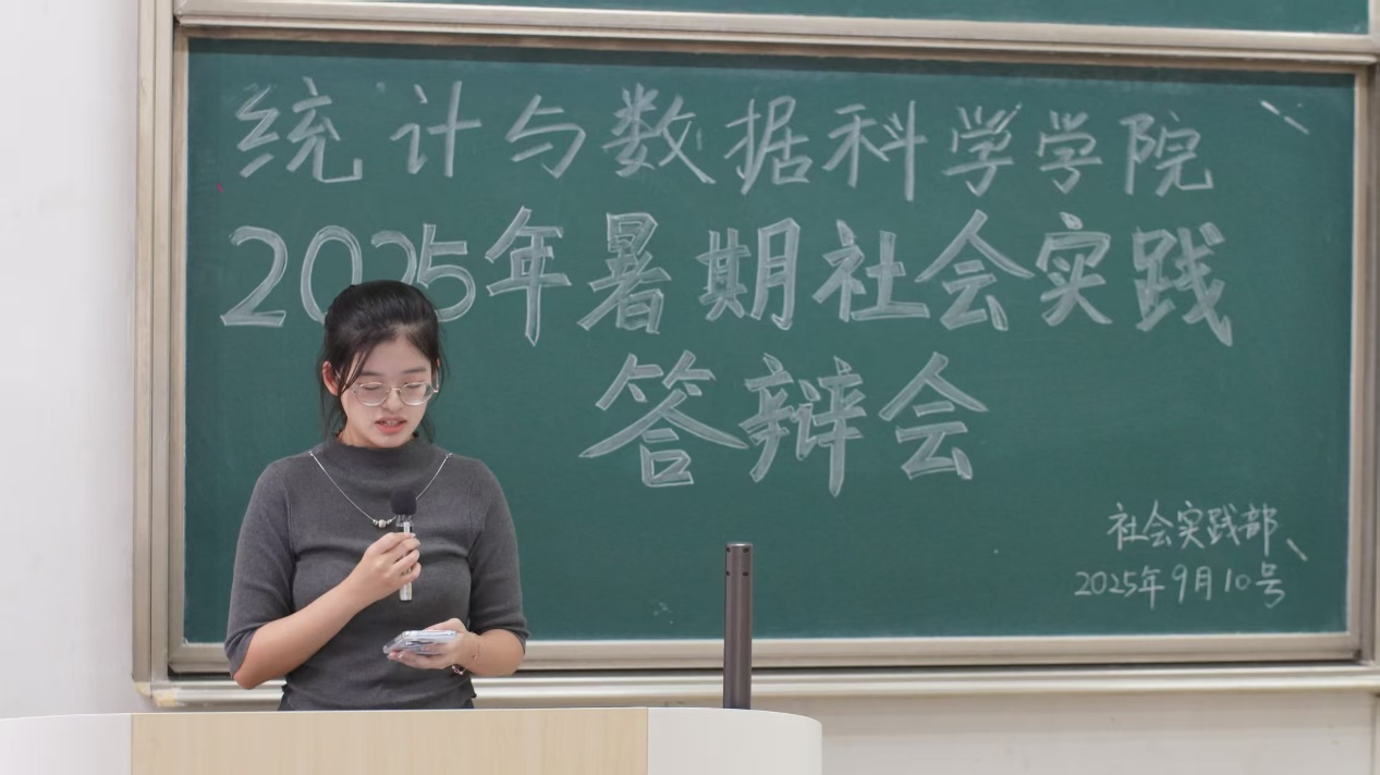 随后,各实践队的答辩代表依次登台,通过 PPT 演示直观呈现实践成果,并围绕实践选题确定、调研过程推进、数据收集分析、实践结论提炼及反思总结等方面,全面分享团队在暑期实践中的探索历程与收获感悟。分享内容紧密结合统计专业特色,充分凸显了理论知识在实际应用中的重要价值。