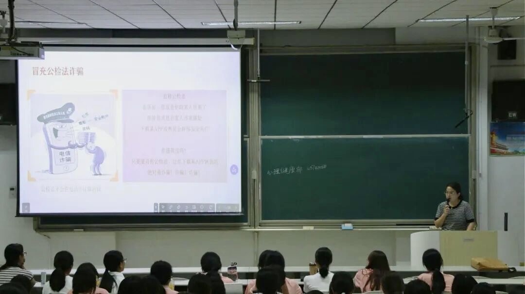 于2025年9月10日在综合楼301举办了防诈骗安全宣讲。学院24级辅导员李文静担任主讲人,25级全体新生参会学习。