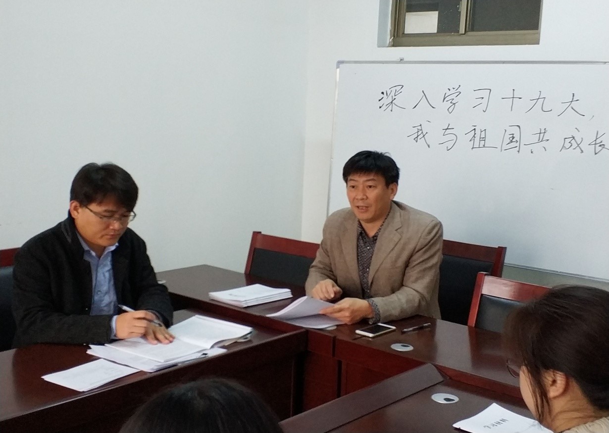 研究生党支部在学院会议室举行以“深入学习十九大,我与祖国共成长”为主题的十九大报告专题学习会。学院党委副书记季中、研究生辅导员尤洪龙出席学习会。