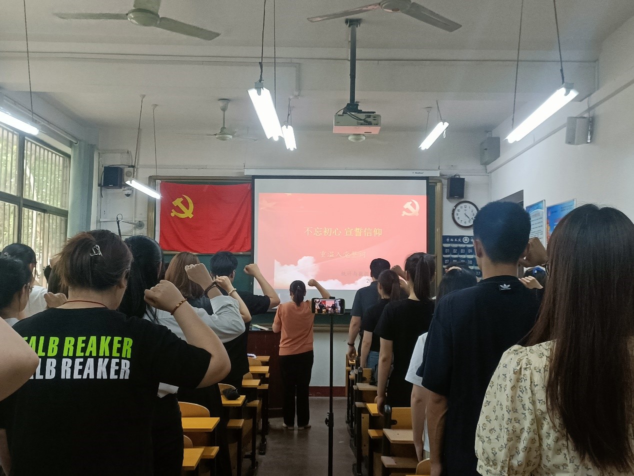 的党员队伍。紧接着,李宴美书记带领全体党员及预备党员重温入党誓词和经典红歌,掷地有声的誓词让同学们坚定了入党的初心。 最后,季中书记对本次活动做出总结,他指出,全院党员同志都应深入学习贯彻习近平总书记重要讲话精神,自觉将自身思想和行动统一到习近平总书记重要讲话精神上来,树立坚定的理想信念,担负起新时代的历史使命。
