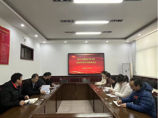 在学院会议室召开2023年党外人士代表座谈会,听取党外人士对学院高质量发展的意见建议。学院党委书记刘明海、院长赵胜利、党委副书记季中、副院长赵翔华出席本次会议。