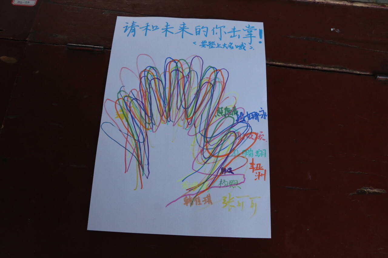 本次活动采用线下提交作品的形式。同学们在活动进行期间使用信纸写下对自己大学期间以及毕业以后的有关于学习、生活、兴趣爱好等方面的人生规划,并于5月19日提交作品。参与活动的同学在最后递交作品时自愿参与现场趣味活动——“请和我击掌!”,用自己喜欢的彩笔画下自己手掌的轮廓并写下自己的名字,以独特的方式与他人击掌、互相鼓励。