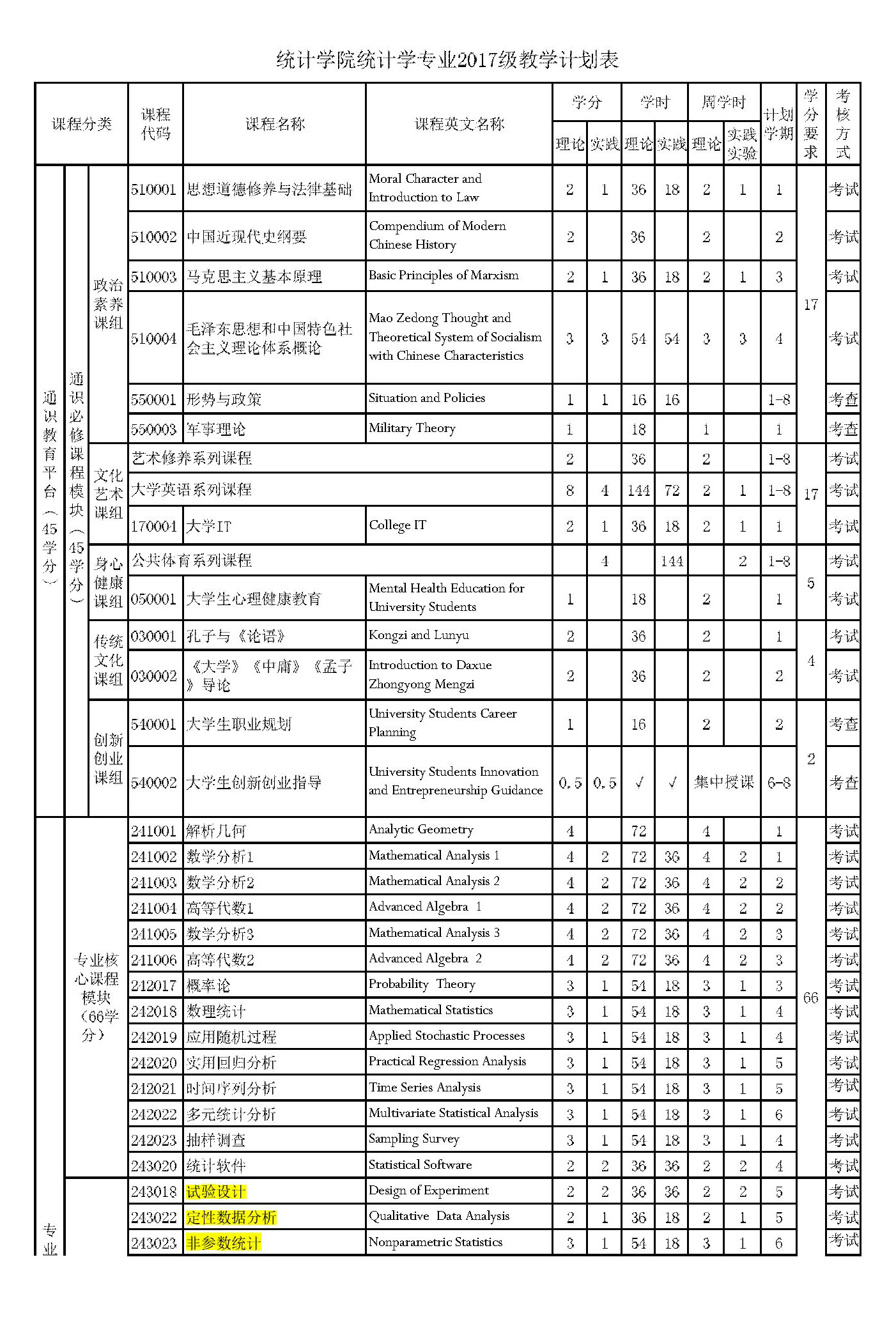 统计学-2017年人才培养方案修订指导性教学计划表.pdf
