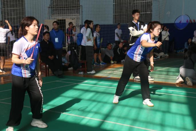 比赛以师生联谊的混合团体赛形式开展,设有男子双打、女子双打、男女混双三种比赛组合形式,每轮各队的比赛采取五场三胜制,每场比赛均采取三局两胜制。比赛场上,运动们挥汗如雨、你追我赶,球风时而沉稳、时而凌厉,高远球、扣球、劈杀、吊球等精湛的球技纷纷呈现,无不展现着体育运动永不放弃的精神。场外,观众席上挤满了热情的师生,他们高喊着助威口号,现场气氛异常热烈。羽毛球比赛,是青春的舞台,是激情的绽放,让我们共同体验这美好的时刻。