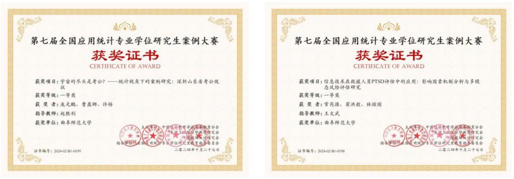 v 在全国应用统计专业学位研究生案例大赛中,荣获3项国家级奖项,其中一等奖2项、二等奖1项;