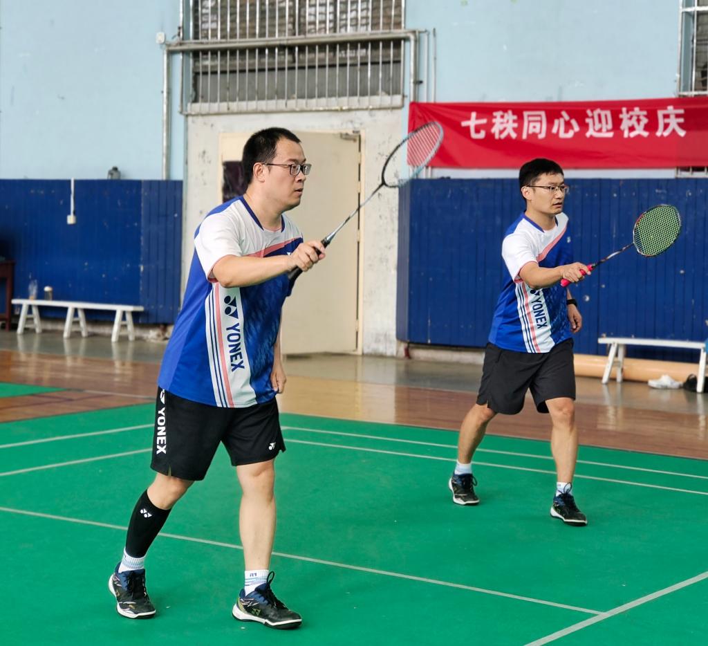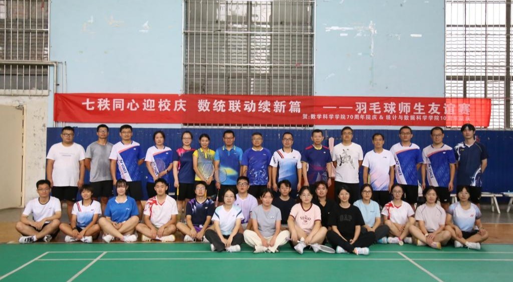 与数学科学学院联合举办"七秩同心迎校庆 数统联动续新篇"羽毛球师生友谊赛。导师与学生同场竞技,现场气氛热烈融洽。比赛中师生切磋球技,既有激烈角逐,亦有默契协作,精妙的扣杀与吊球赢得观众热烈掌声。赛场之外,师生交流心得、畅谈感悟,有效增进了彼此情谊。此次友谊赛不仅深化了师生关系,更彰显了学院师生团结协作、携手奋进的精神风貌,为七十周年校庆献上独特贺礼。